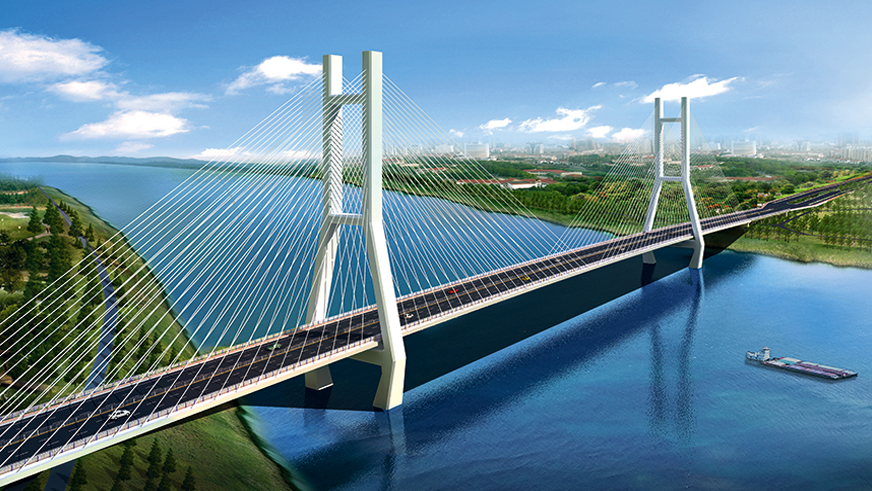 濟(jì)南黃河公路大橋采用雙塔雙索面等高鋼桁架斜拉橋結(jié)構(gòu)形式,全長(zhǎng) 1028 米,主跨 488 米,主塔高 168 米,主梁采用整體式鋼桁梁斷面,上下兩層,上層橋面為雙向八車道公路橋面,下層為雙線軌道橋面。濟(jì)南黃河公路大橋是貫徹落實(shí)黃河流域生態(tài)保護(hù)和高質(zhì)量發(fā)展的國(guó)家戰(zhàn)略深入實(shí)施的重大項(xiàng)目,是加快濟(jì)南“擁河發(fā)展”、奮力開啟“黃河時(shí)代”的重要保障。